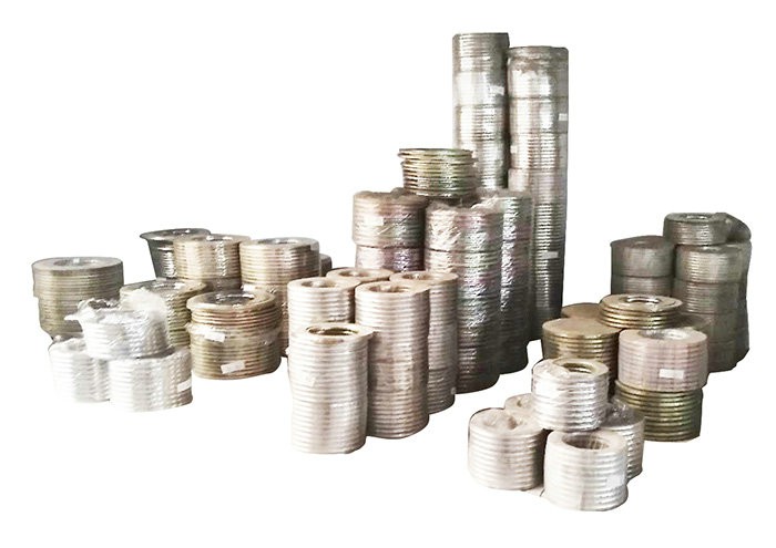 纏繞墊片是指用金屬帶(一般是v型鋼帶)與非金屬帶纏繞成環(huán)形的墊片,金屬帶與非金屬帶交替纏繞,由于其具有較好的彈性,廣泛用于石化、化工、電力等行業(yè)的法蘭密封結(jié)構(gòu)中,根據(jù)具體部位,可在墊片的內(nèi)層或外層加上鋼環(huán)來(lái)定位或加強(qiáng)。
